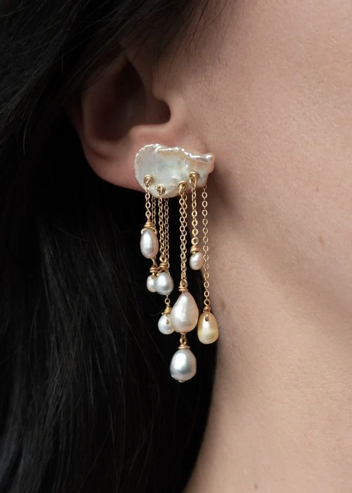 Delicate chains, moody movement, and pearls like raindrops caught midair.
