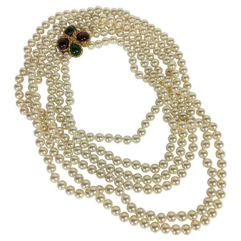A quiet rebellion in cascading pearls, punctuated with bold gem cameos.