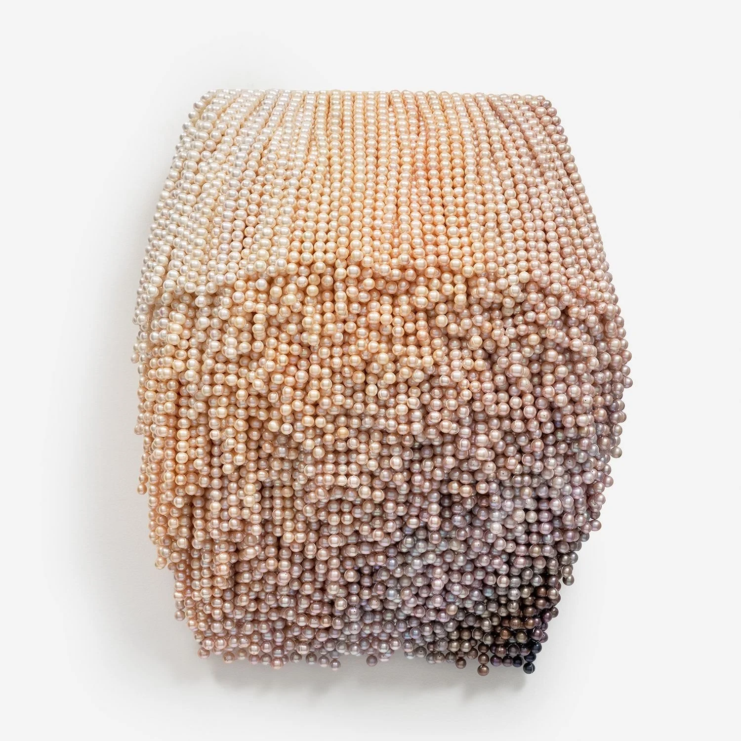 Hundreds of pearls form a gradient you’ll want to fall into. A soft sculpture that captures movement in stillness.